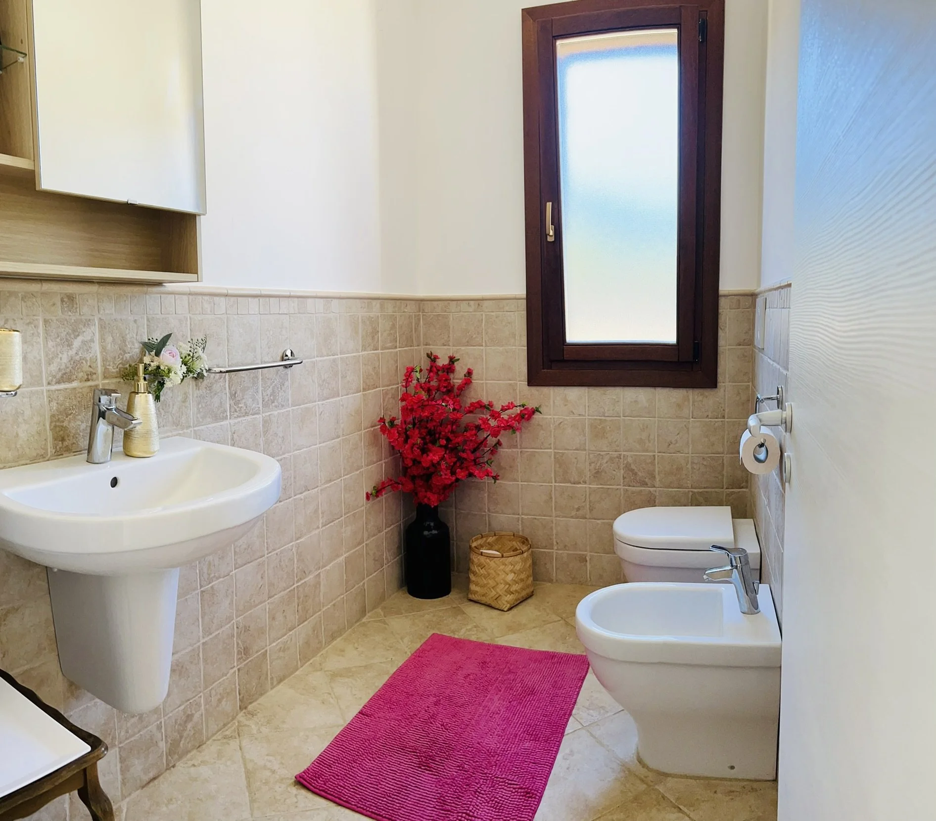 Shared bathrooms (full bath on same floor, half bath on ground floor)