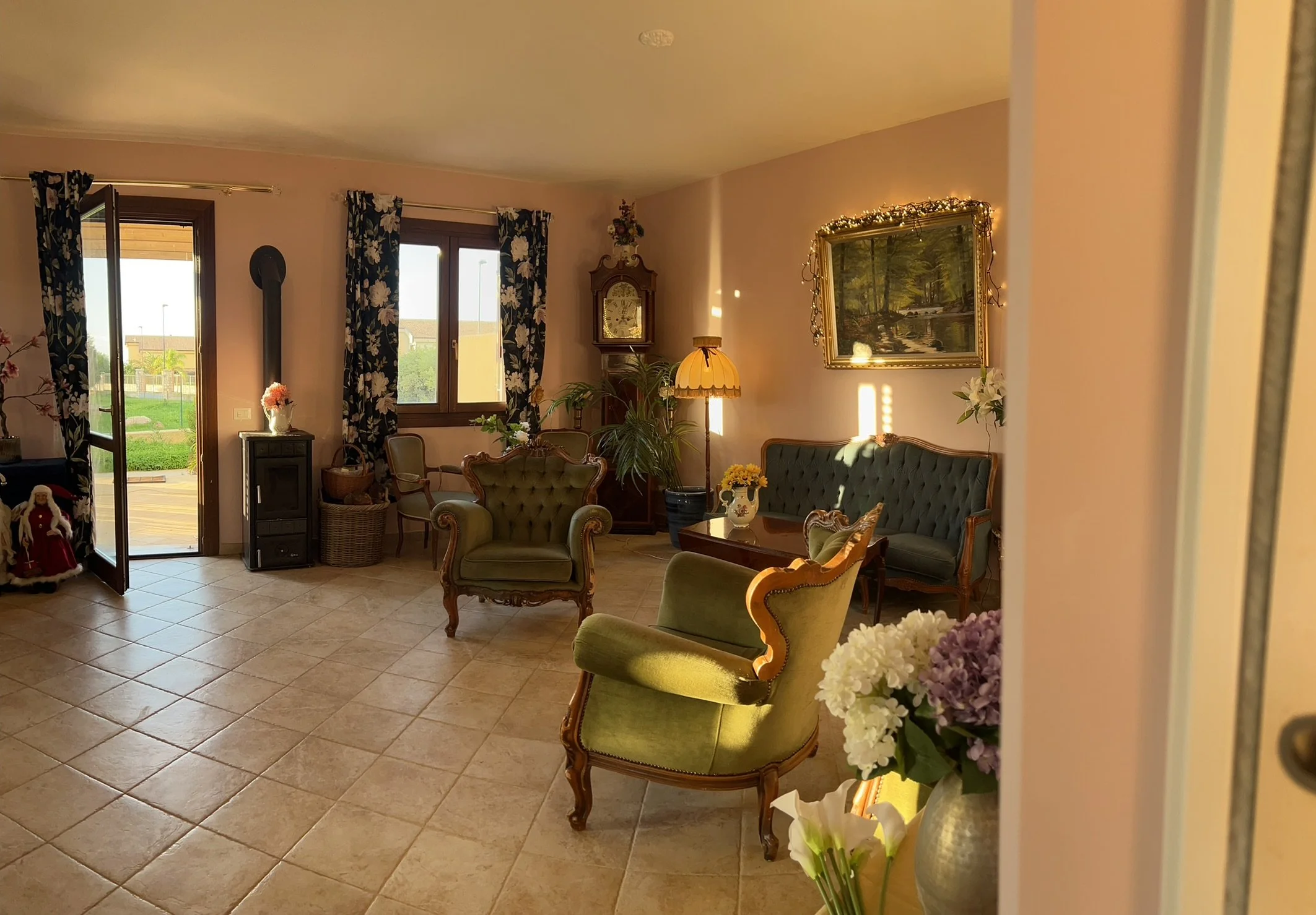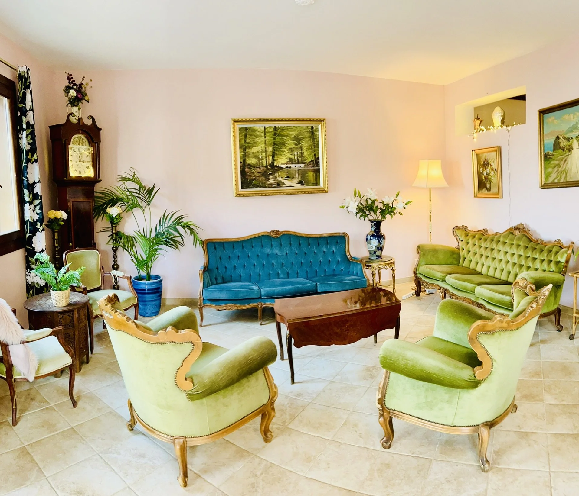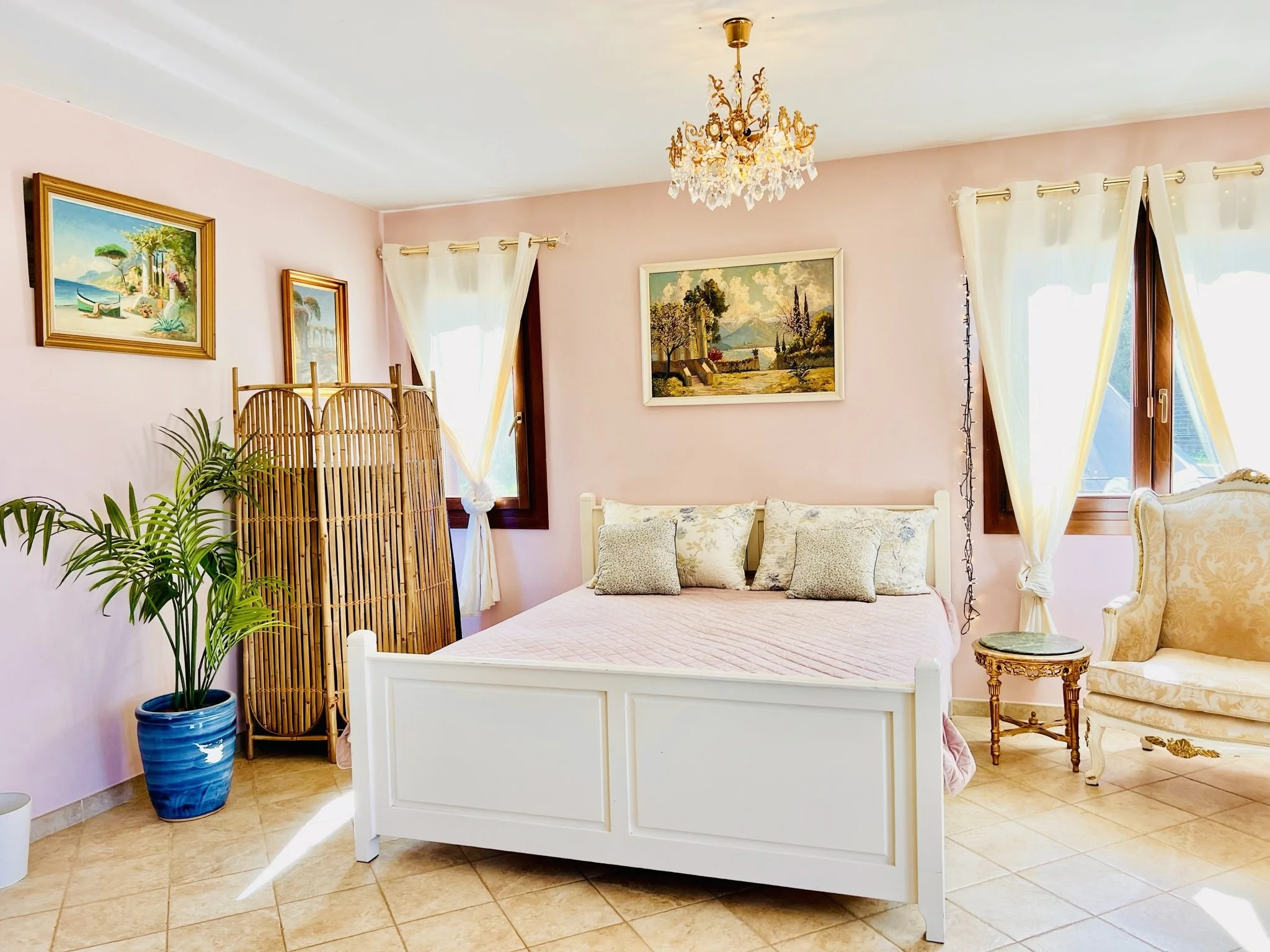 A grand room with living area. Our only ground floor room. Features a secluded terrace facing west. Shared bathroom and toilet.